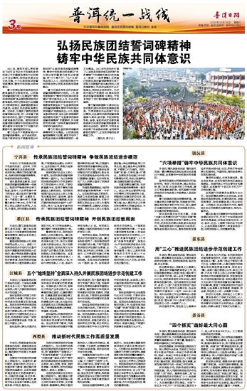 抓实典型示范,民族团结进步事业持续发展。深入开展民族团结进步示范创建“八进”活动。推荐命名第二批“全市民族团结进步示范单位”15个,命名第二批“全县民族团结进步示范单位”69个。扎实推进重点项目建设。实施“十县百乡千村万户”示范创建工程项目9个,投入项目资金900万元。大力营造民族团结进步氛围。