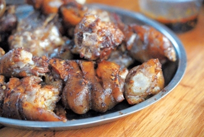 磨黑烧烤以香、酥、脆、嫩、鲜取胜。磨黑烧烤中的“顶流”烤猪蹄和烤干巴,一个软糯弹牙,一个酥香耐嚼。猪蹄经过处理后在炭火上烘炙,脂肪因加热而发出“滋滋”的响声,撒上特制辣椒面,咬下一口,鲜味、辣味、咸味带来的复合口感在唇齿间交融,带来无限的满足感。而烤干巴则是把优质的本地牛肉切小条,辅以适当食盐、花椒、辣椒等佐料,用果木炭火慢慢烘烤,牛肉水分挥发肉质紧缩,散发出让人垂涎欲滴的香味。