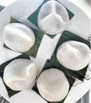 三尖角粑粑最普遍的做法是将优质糯米和大米以三比一的比例混合磨成吊浆,取少量吊浆做成熟浆疙瘩后调入吊浆内,让它变成有可塑性的筋面。红糖、白糖、花生、芝麻做成甜馅后用筋面包裹,并用三指挤捏成三角状后放入笼屉。蒸约十五分钟,一个个热气腾腾的三尖角粑粑就做好了。趁热咬一口,甜馅就会缓缓流到嘴里,香甜又好吃。